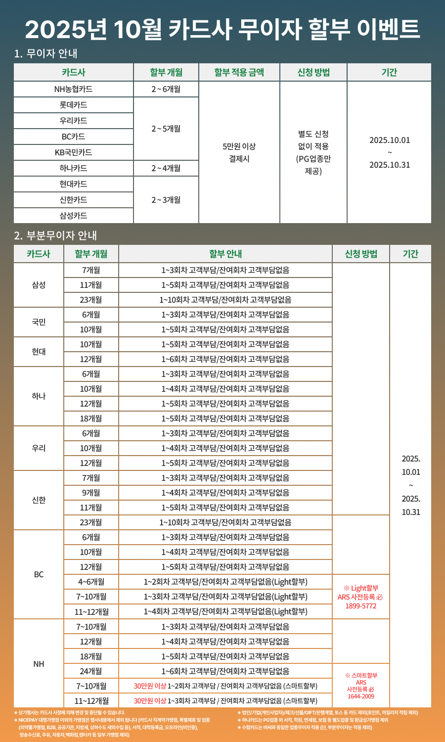 [2025년 10월] 카드사별 무이자 및 부분무이자 안내