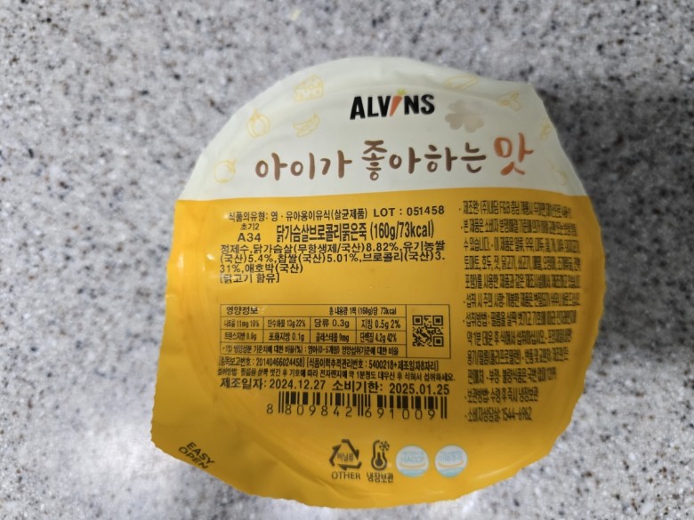 기존에 먹던 업체는 초기에서 중기로 넘어가는게 아이에게 부담스러웠나봐요. 엘빈즈 체험팩 신청해서 먹여보니 잘 먹어서 먹이기 시작했어요. 양은 160g 거의 정량이라 기존 업체는 +1-20g이었지만 저울로 재서 먹이지 않아도 되니 편하기도 해요. 다만 배송왔을 때 아이스박스에 그냥 담아주셔서 현관에서 가져오기도 번거로울 뿐더러 스티로폼 가루가 집안에 난리네요.. 비닐에 한번 더 패킹 후 담아주시면 좋을텐데 개선의뢰하니 이 의견이 많다고 하시던데 안되면 어쩔 수 없죠..
